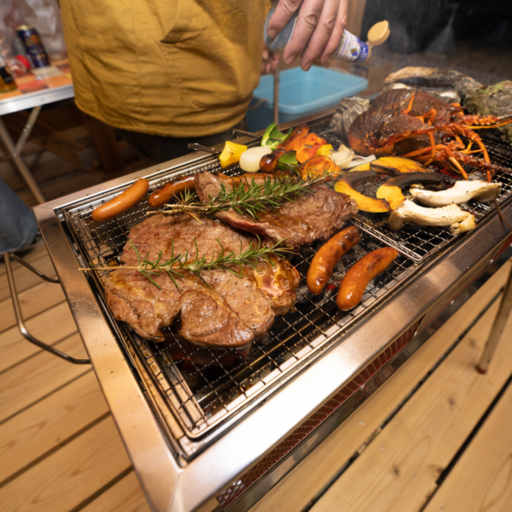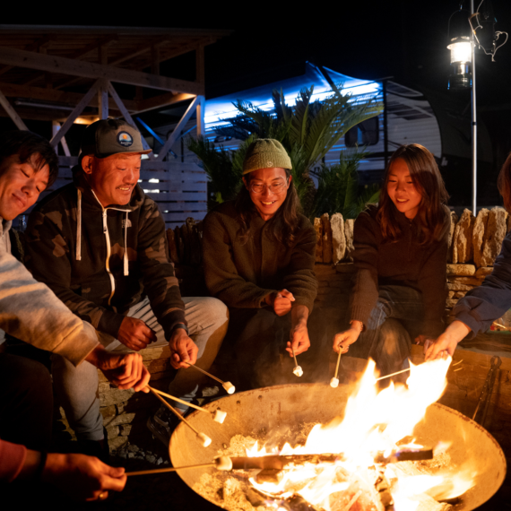 目の前の海で大自然を満喫したら、焚火を囲み、BBQを楽しみ、